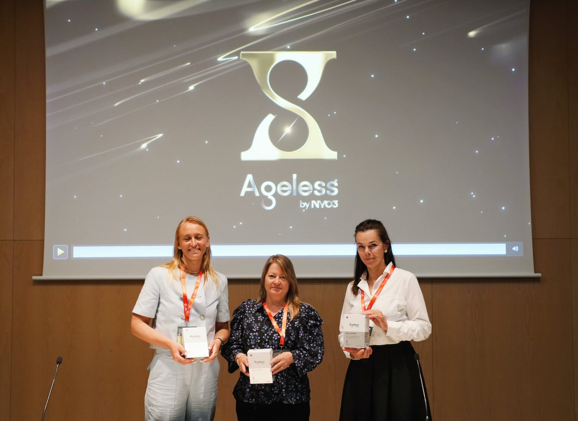 【NYO3全球营销总监Julia(左一)与NO-Age教授】
