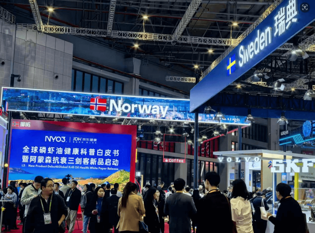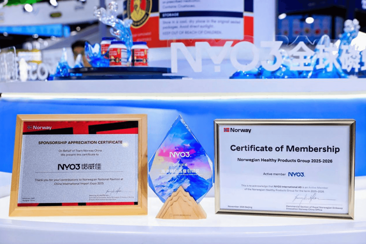 进博会作为全球企业共享中国机遇的重要平台,为NYO3提供了展示科研实力与产品创新的窗口。面对中国14亿规模的大健康市场,NYO3立足挪威创新,以海洋磷脂科技持续引领抗衰前沿。随着全球健康需求不断增长,NYO3有望进一步巩固其国际市场地位,为中挪健康产业合作注入新活力。