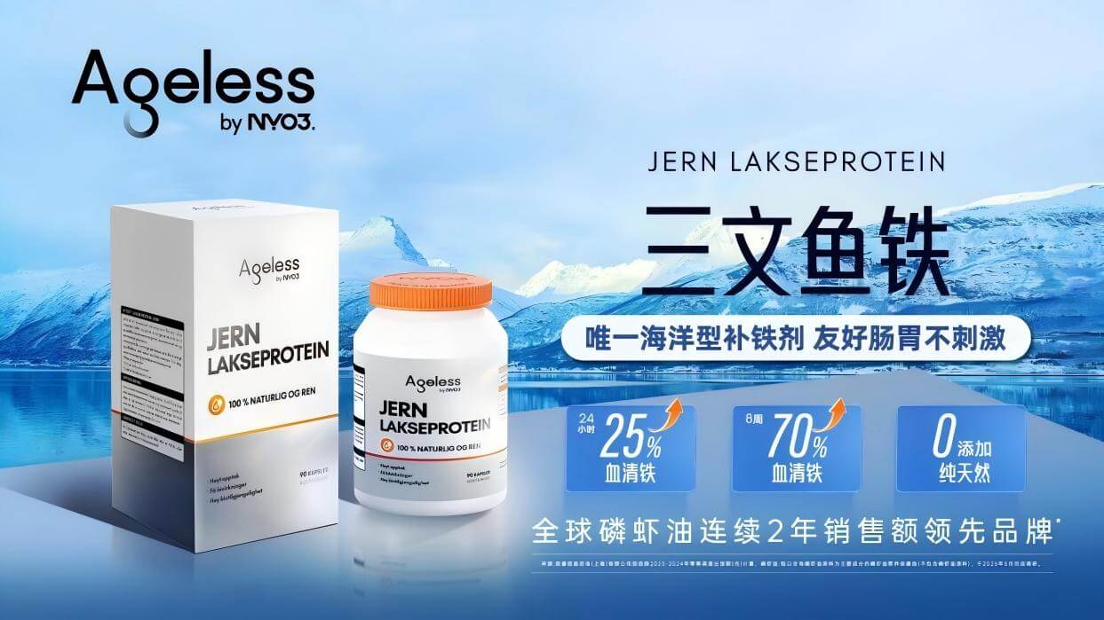 铁作为人体必不可少的微量元素,影响着数亿人的活力与健康。目前市面上大多数铁补充剂为实验室合成,吸收率低且易引发胃肠不适。针对这一痛点,NYO3专业抗衰产品线Ageless与挪威莱瑞集团联合研发出全新天然补铁剂。